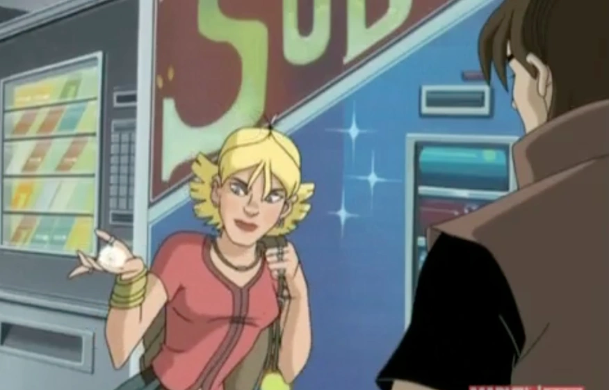Tabby runs into Lance at the soda machines. He rumbles the machine to get a free soda. Tab says nice technique, then places a bomb in the machine. It explodes, causing money and sodas fly everywhere. She grabs a soda and asks Lance what he thinks of her technique. He tells her that she'd fit right in with the Brotherhood. She laughs and says as if she'd want to and leaves.