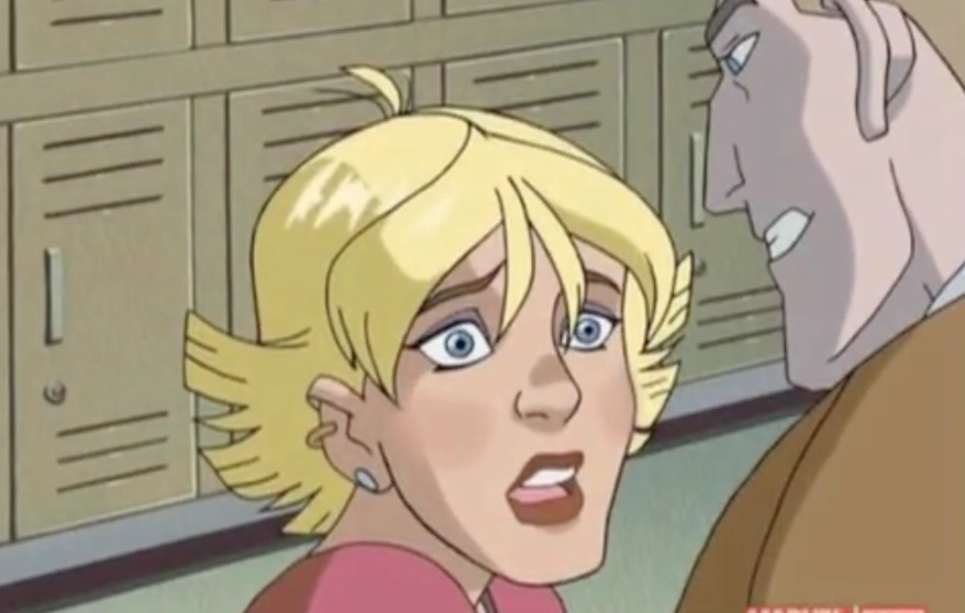 At school, Mr. Kelly makes an announcement about a fund raising carnival that's being held to raise money for a new gym as the old one had been destroyed. In the office he tells the secretary Dorothy to pick up the proceeds every hour and deposit them in the office safe. They turn around to find a man that's been standing there listening. He tells the secretary that he's there to see Tabitha Smith, his daughter. She checks the files and tells him that Tabby has a restricted visitor list and he'll have to check with the Xavier Institute. He says thanks and leaves.