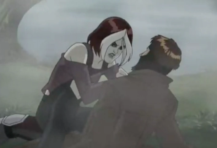 As she walks on, Remy grabs Rogue by the arm much to her surprise, she panics and tries getting free but the former emits a sleeping gas from his staff into her face, she falls to the ground instantly after. Soon after, Rogue awakens on a moving train as Remy confronts her though she goes to attack her kidnapper only to find herself tied up, Remy admits that the situation is so Rogue can become less stressed as she stares on.