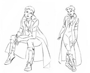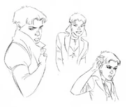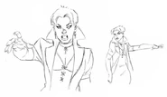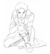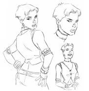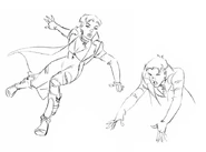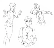 Artwork by the designers of the show for the character of Wanda Maximoff, AKA the Scarlet Witch. The art features several renditions of Wanda either in action or in a pose. The designs also include multiple facial expressions, most of which are of her being angered or disinterested with whomever or whatever she is staring at.