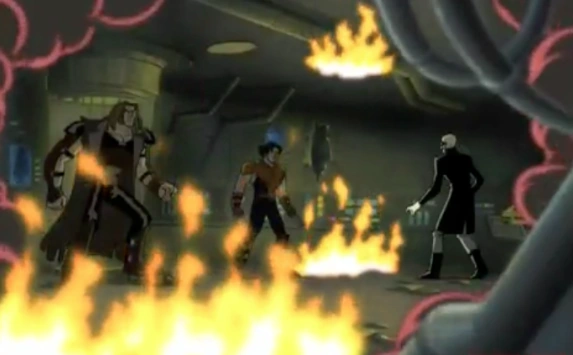 Kurt and Kitty port into the lab ahead of Sabretooth. Kitty runs ahead to find Logan, while Kurt takes on Sabretooth. Logan makes his way into the lab and the scientist turns up the controls to 100%. Logan drops and the scientist sends out these huge droids to catch him. They have Wolverine pretty much tied up when Kitty phases in and sees what's happening. She runs through the droids shorting them out, then continues on and dives into the lab's control panels. Everything starts shorting out, and there are some explosions as Kitty phases back out of the panels. Wolverine has regained control and starts after the Scientist. The Scientist says that the whole lab is going to blow. Wolverine says let it and tells Kitty to leave. She doesn't want to leave without him, but Kurt ports in and grabs her. The kids port out as Sabretooth arrives. Wolverine says Project Weapon X is terminated. Outside and in the distance, Kurt and Kitty re-appear. They watch as the whole top of the mountain explodes. Later as they're waiting, Logan staggers up to them looking very run into the ground.