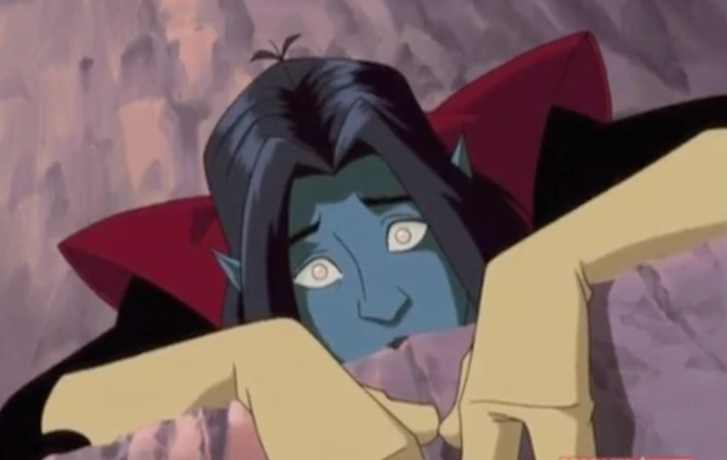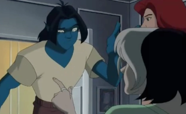 A few hours after going to sleep, Rogue wakes up screaming.Everyone rushes into the girls' bedroom to find out what's going on, and as Rogue is telling them about the nightmare, she realizes that the baby in her dream was really Kurt. Xavier asks Jean, Rogue and Nightcrawler to come down to the library where he reads Rogue's mind.