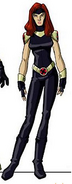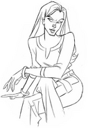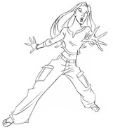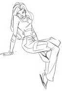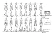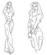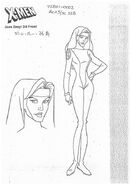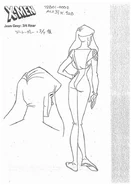 Line art and finished renders of Jean Grey for the show as drawn by the artist and animation crew. The page consists of production art, concept art from the early stages of creating designs for the characters. an unused design of Jean as The Phoenix which would have been explained in season five if the show had continued, The Dark Phoenix arc can be found in other X-Men media however. Finalised renders showing Jean sat down in a seat during class for a frame during her introduction within one of the themes.