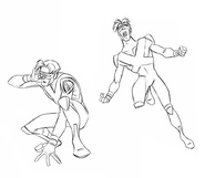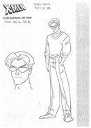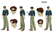 Line art and finished renders of Scott for the show as drawn by the animation and artists of the show. This page consists of production art, concept art from the early stages of creating designs for the characters. It also includes finalised renders showing Scott in his set upon design and finally an image of him from the episode "Grim Reminder".