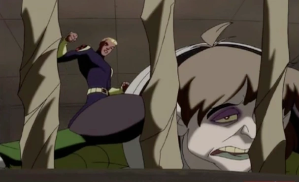 Later at Bayville High, Todd is waiting in the high school's main office when the principal, Ms. Darkholme calls him into her office. As he walks into the room, Darkholme smells Todd's repulsing odor and excuses herself as she goes to open a window. After she does, Darkholme asks Toad about his 'new friend', Scott Summers. Toad exclaims that Scott's cool and if it wasn't for him those jocks would've smashed his skull flat. Darkholme states the Scott has special powers and that there are others like him. She reasonably states that they need to learn more about them as she orders him to gain access to the Xavier Institute before Toad expressed distaste in doing so, remembering that Scott was the one whom saved him from Duncan and his jock friends. However, Darkholme transformed into a large alien-like monster while hovering over the boy and silenced him, telling him that he would do what he was told.